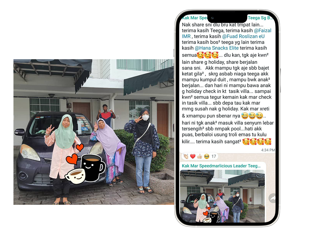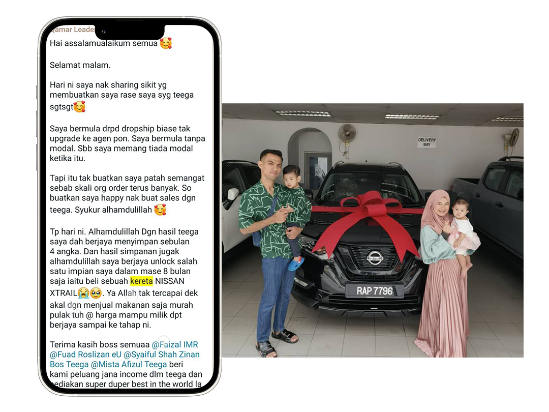 Anda akan sentiasa dibantu oleh usahawan yang lain, kerana di TEEGA kita semua umpama sebuah keluarga yang ingin melihat anda berjaya capai impian.